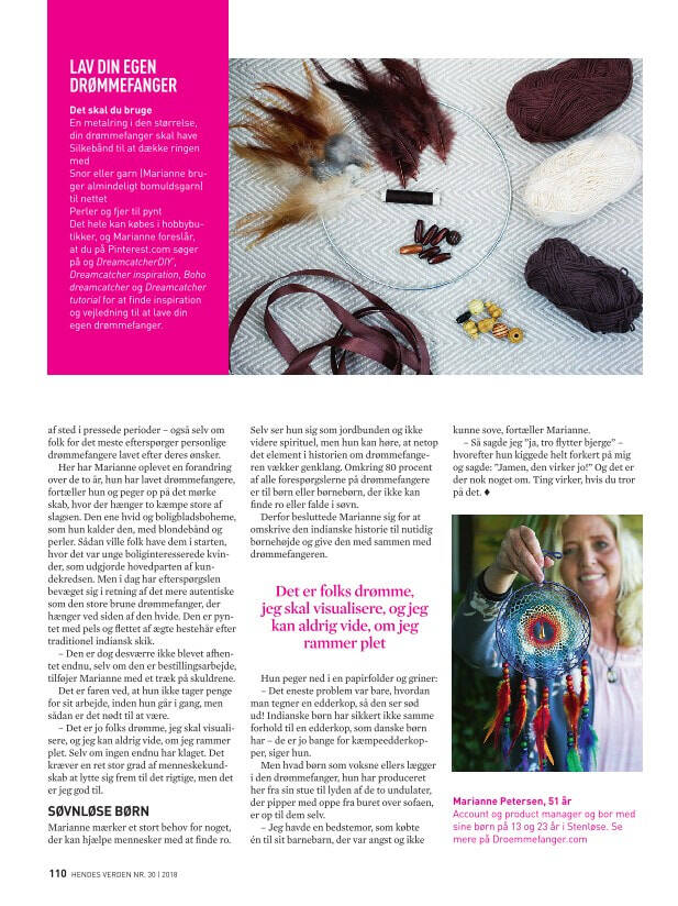 De fleste af de drømmefangere du kan se til salg herinde 90 % lavet af mig selv. I løbet af årene er der kommet flere og flere produkter til, både fra egen hånd og design, men også via udenlandske leverandører. Udvalget er vokset stødt og på sigt er planen at have en lille fysisk landbutik og cafe sideløbende med webshoppen.