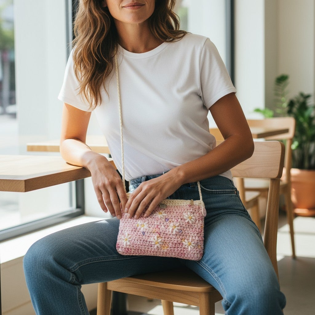 Hver taske er hæklet i hånden og designet med kreativitet og kærlighed. Det er små unika, hvor ingen er helt ens – og netop det gør dem særlige.