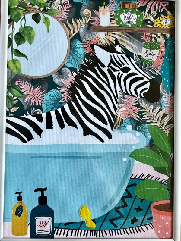 Flot kanvas billede af zebra i badekar( uden ramme )