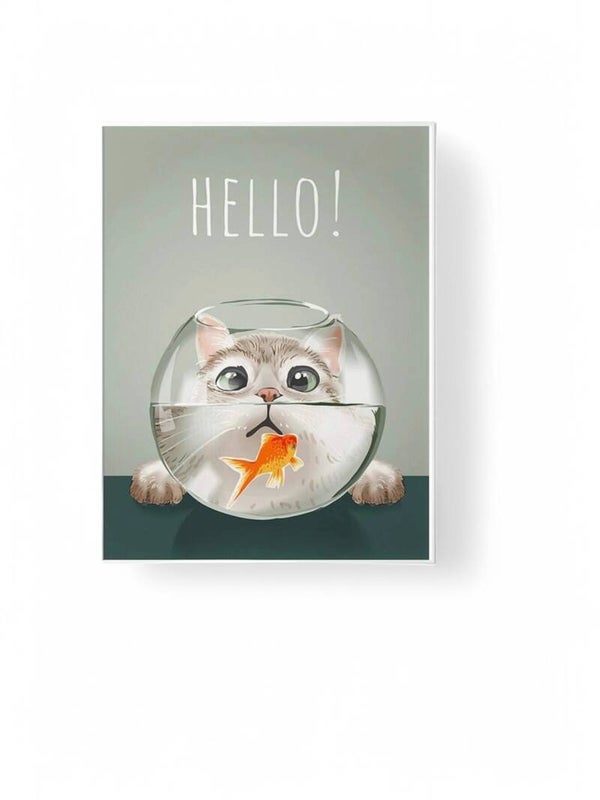 Sjovt kanvas billede af kat der kigger på guldfisk( uden ramme )