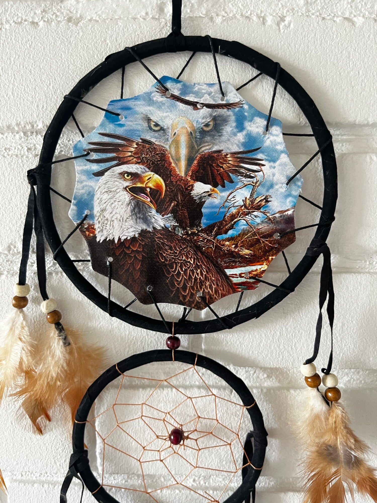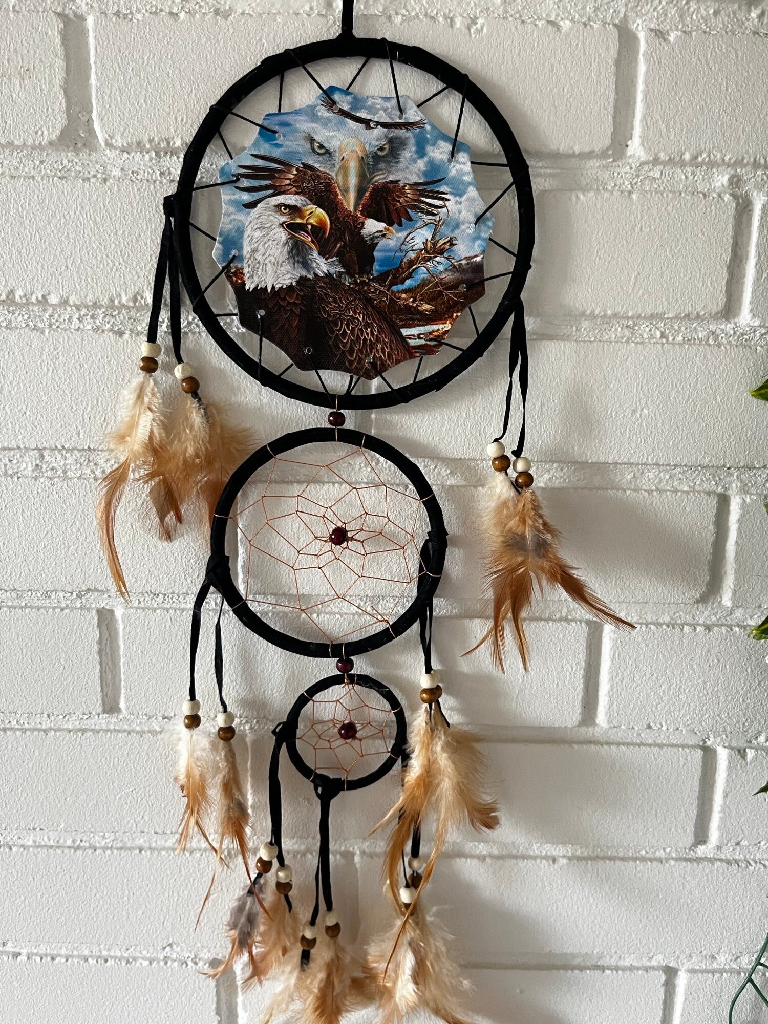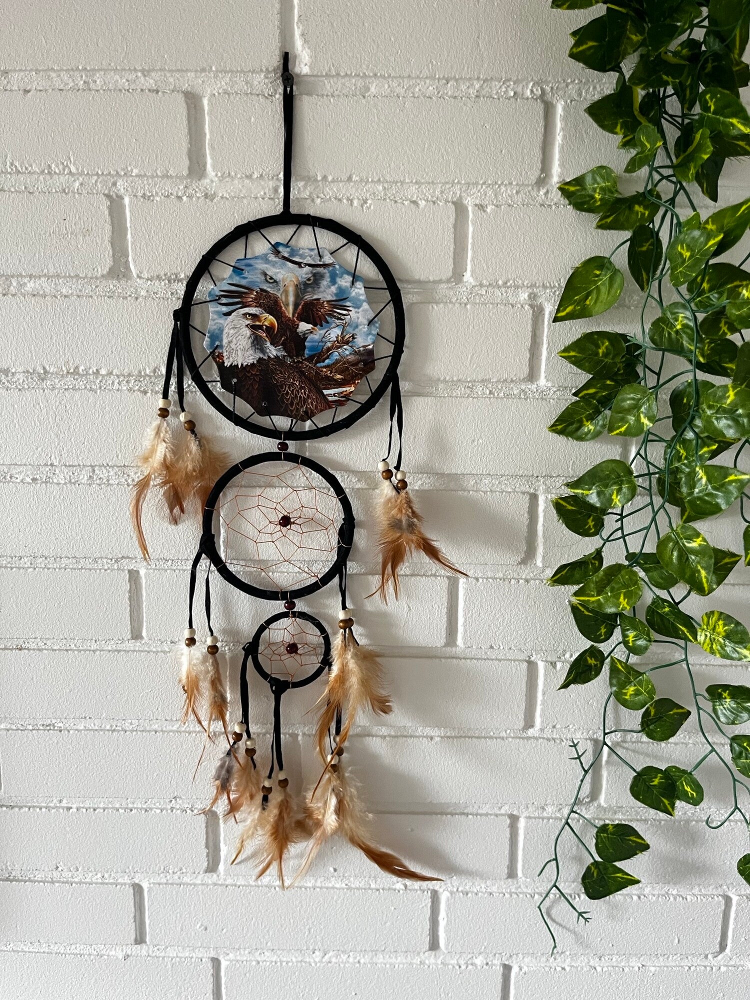Mandala drømmefanger med 3 ringe med motiv af ørn