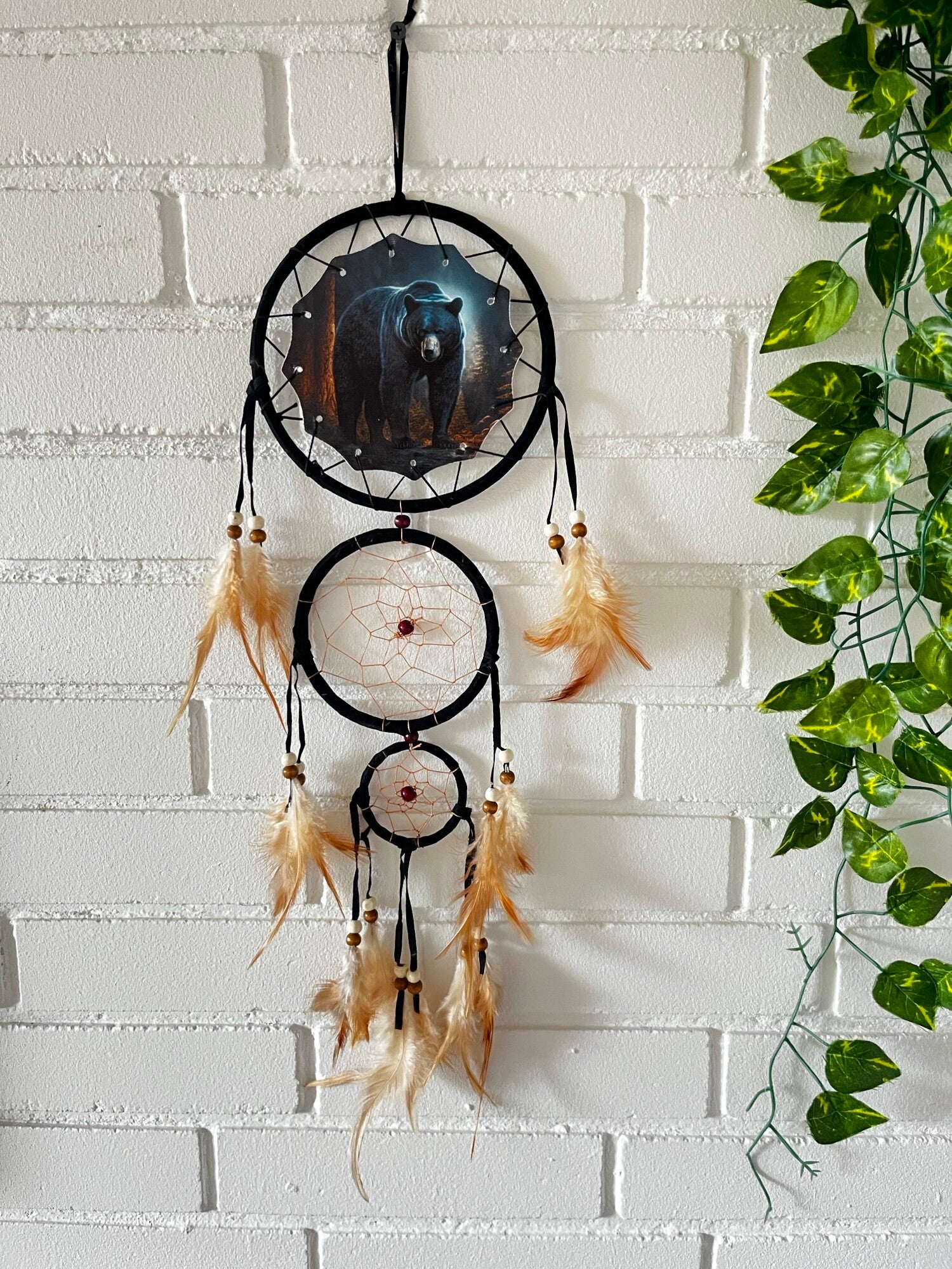 Mandala drømmefanger med 3 ringe med motiv af bjørn