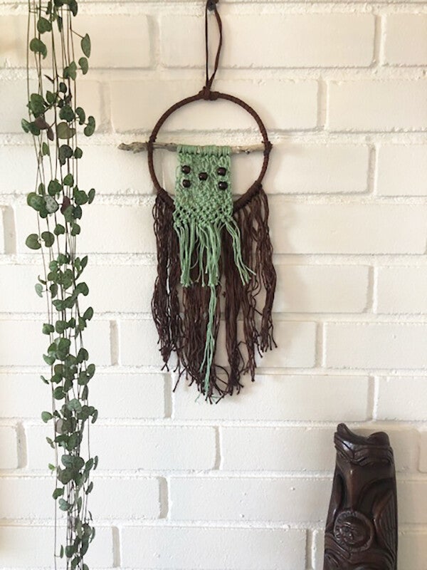 Brun drivtømmer drømmefanger med træperler og uden fjer