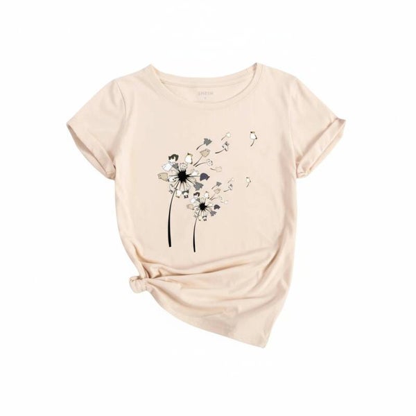 En sød og anderledes T-shirt, der kombinerer natur og kærlighed til katte. Printet forestiller en mælkebøtte, hvor frøene forvandler sig til små katte – en finurlig detalje, der fanger blikket og smelter hjerter.