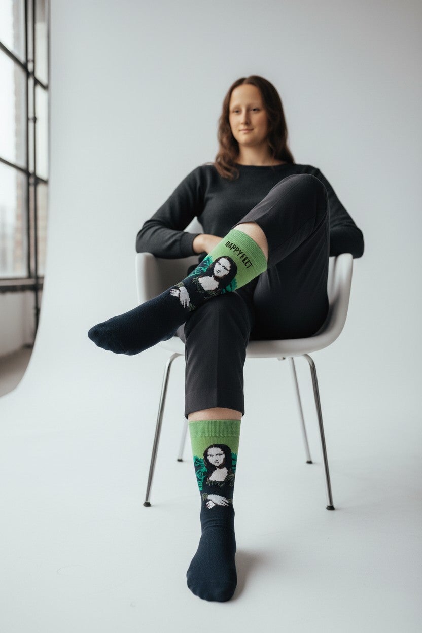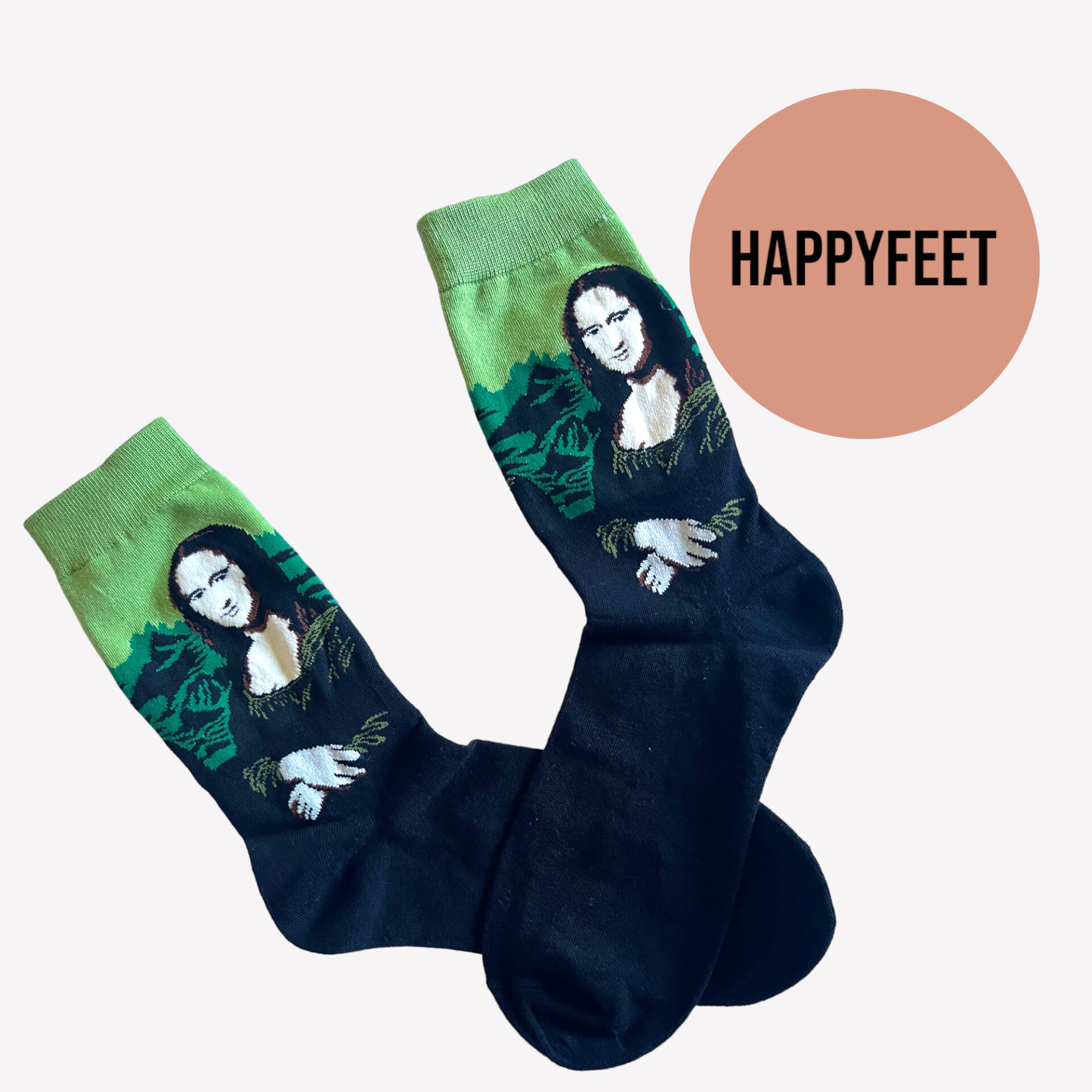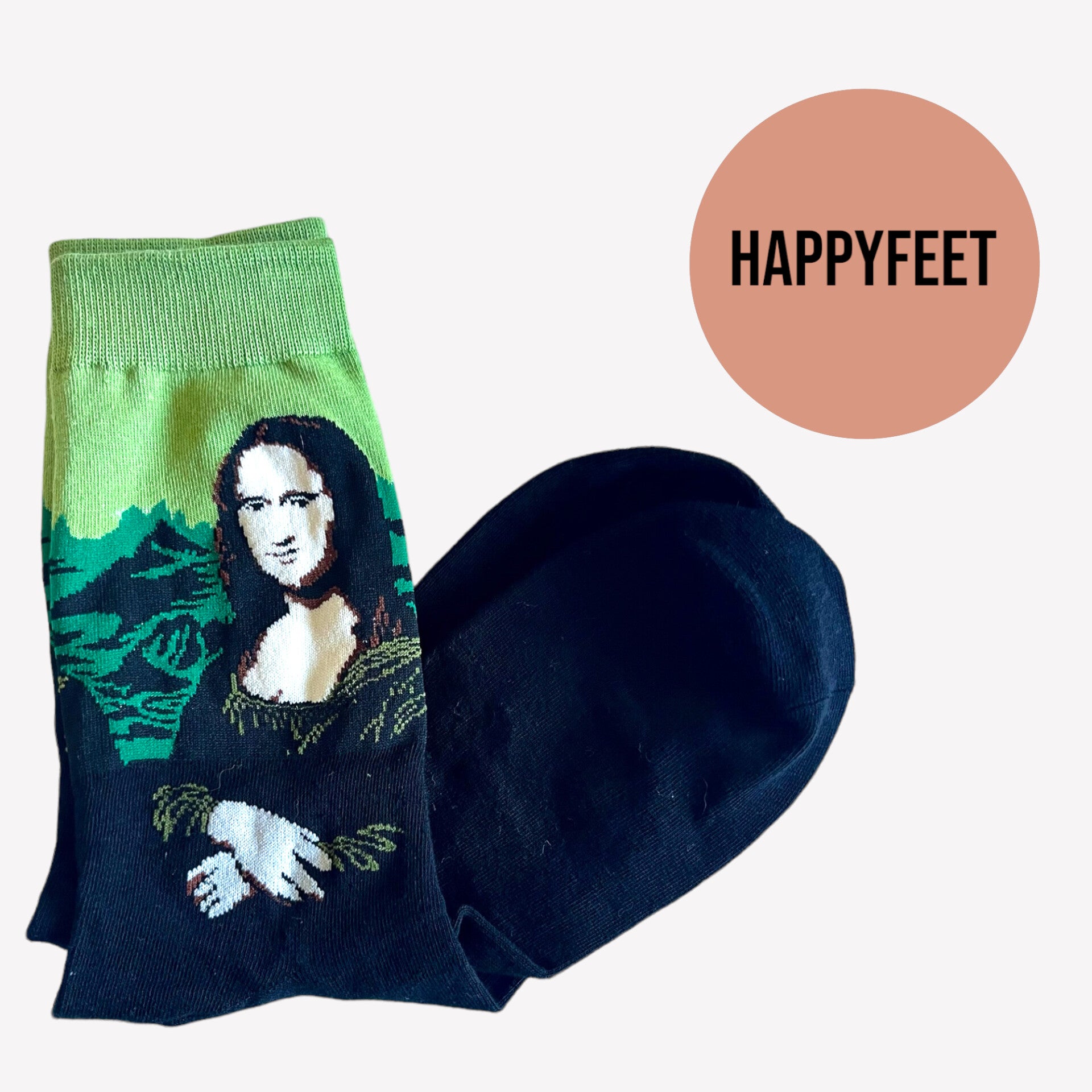 Drop det kedelige og gør plads til farver, sjove mønstre og små kunstværker på dine fødder. Happy Feet er one size strømper med festlige designs inspireret af mennesker, dyr og kreativ galskab.