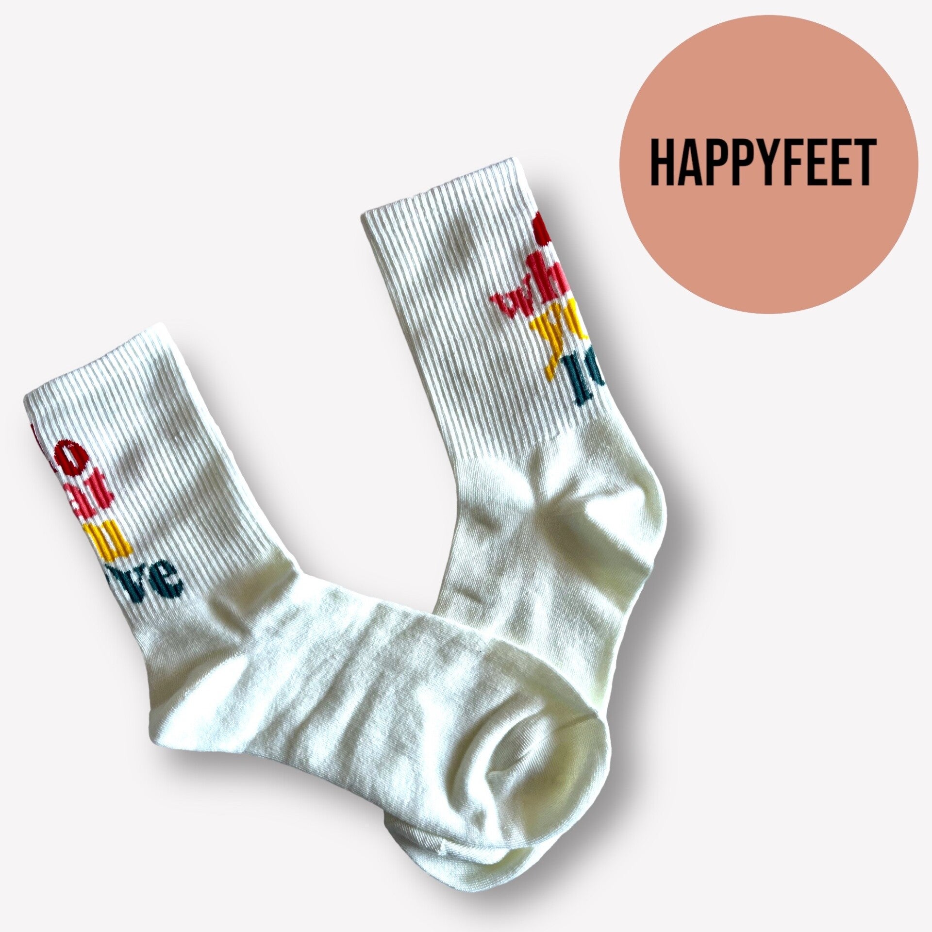 Drop det kedelige og gør plads til farver, sjove mønstre og små kunstværker på dine fødder. Happy Feet er one size strømper med festlige designs inspireret af mennesker, dyr og kreativ galskab.