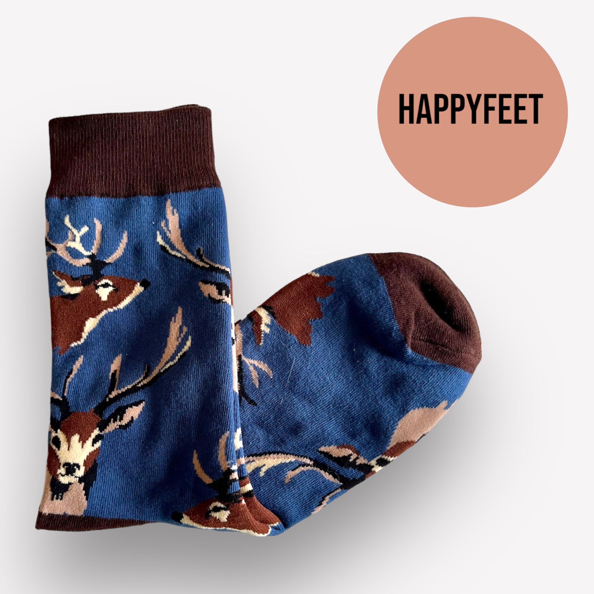 Drop det kedelige og gør plads til farver, sjove mønstre og små kunstværker på dine fødder. Happy Feet er one size strømper med festlige designs inspireret af mennesker, dyr og kreativ galskab.