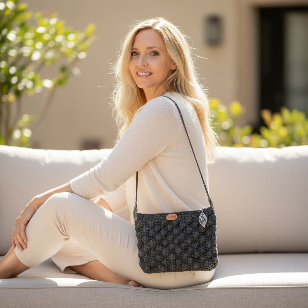 Hver taske er hæklet i hånden og designet med kreativitet og kærlighed. Det er små unika, hvor ingen er helt ens – og netop det gør dem særlige.