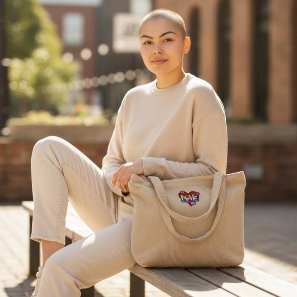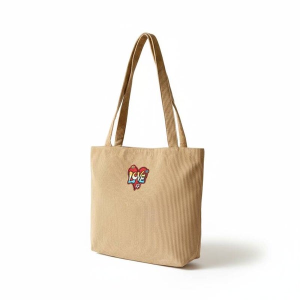 Beige/gylden fløjls tote bag / taske