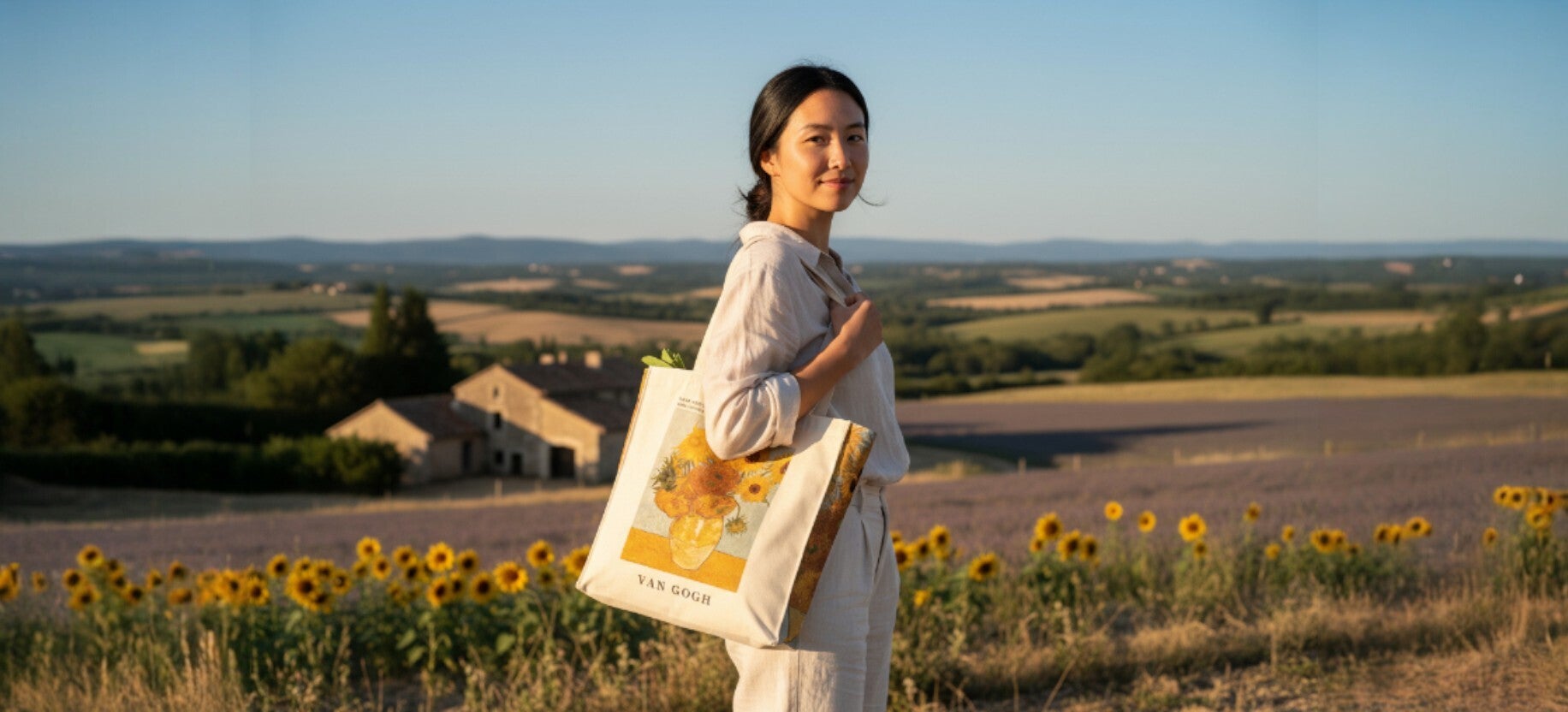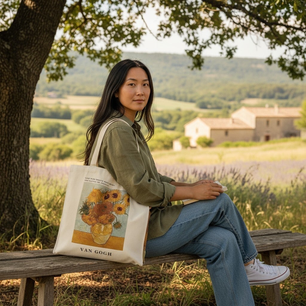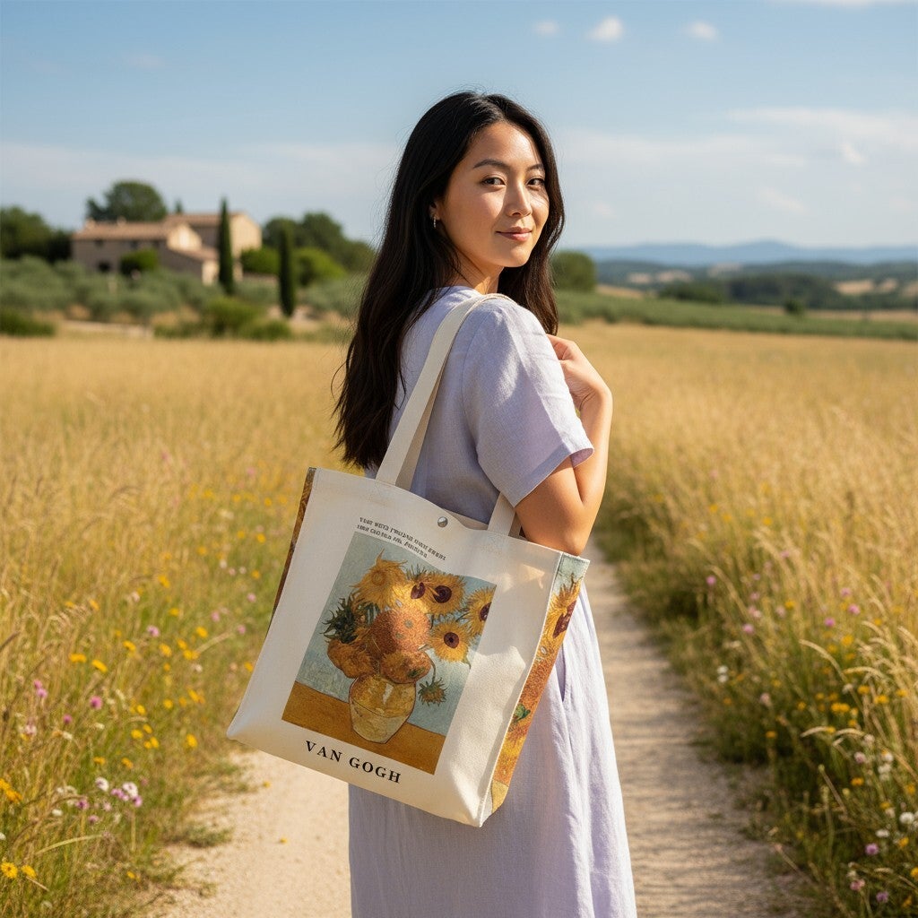 Tote bag i kanvas med tryk af Van Gogh solsikke motiv