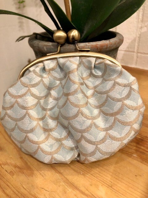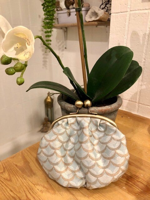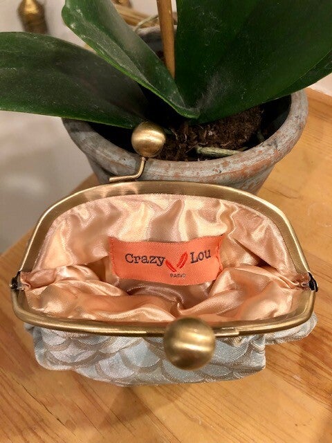 Flot kosmetikpung fra franske Crazy Lou i turkisblå med bølger i guld