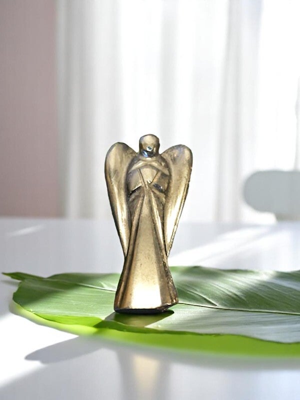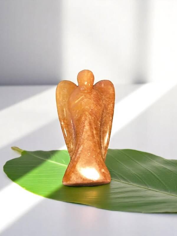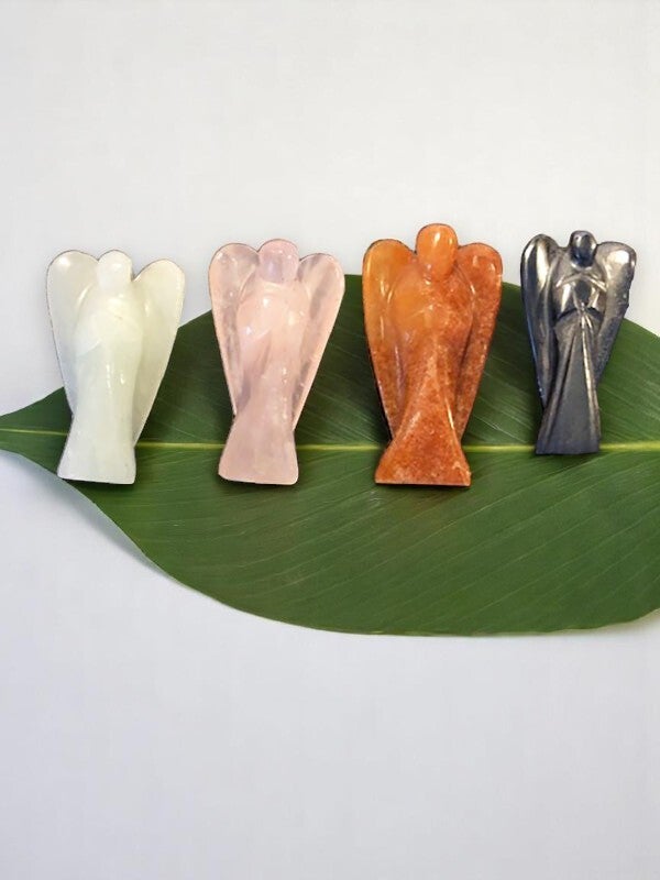 små skytsengle er udskåret i forskellige typer halvædelsten og måler ca. 5-6 cm i højden. De er ideelle som en lille personlig genstand til at have stående på skrivebordet, i vindueskarmen eller med i lommen.