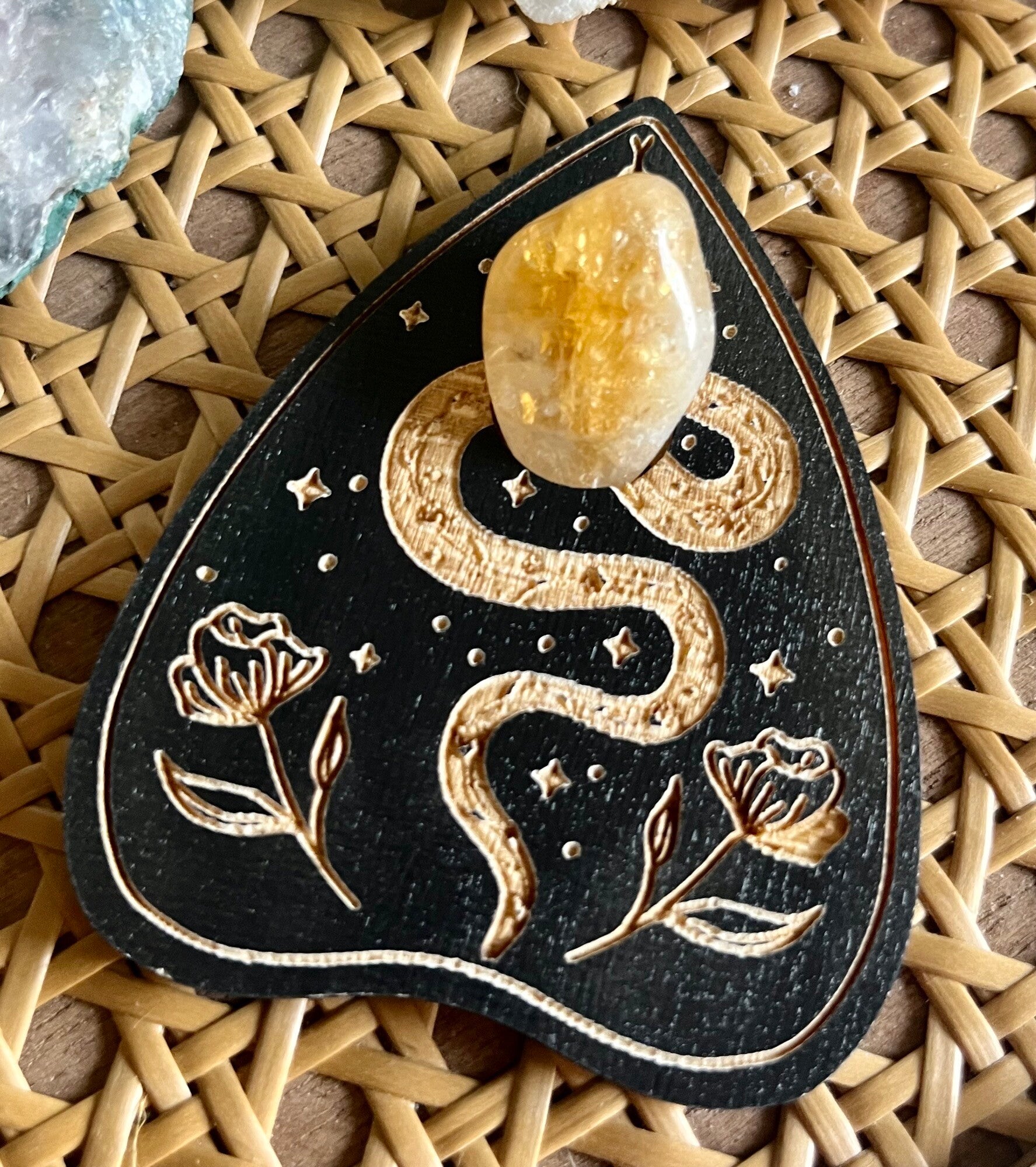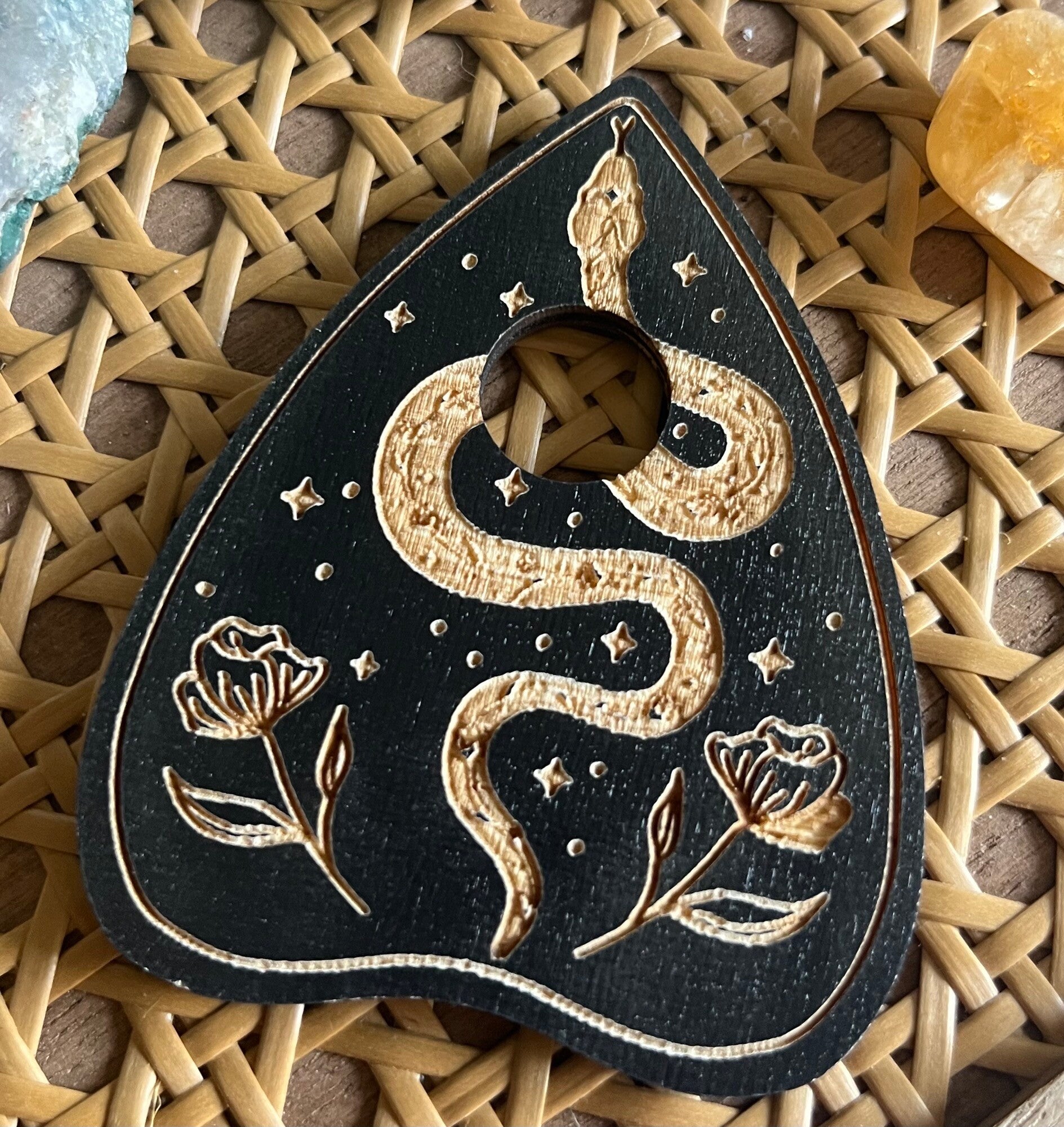 Ouija dekoration med slange, bruges som dekoration og holder til krystaller/halvædelsten