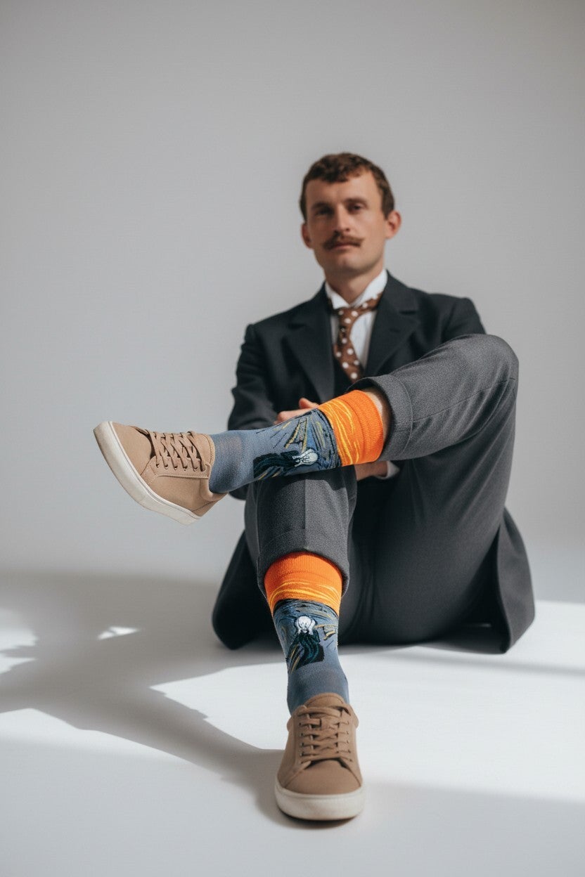 Strømper med Edvard Munch "Skriget" print