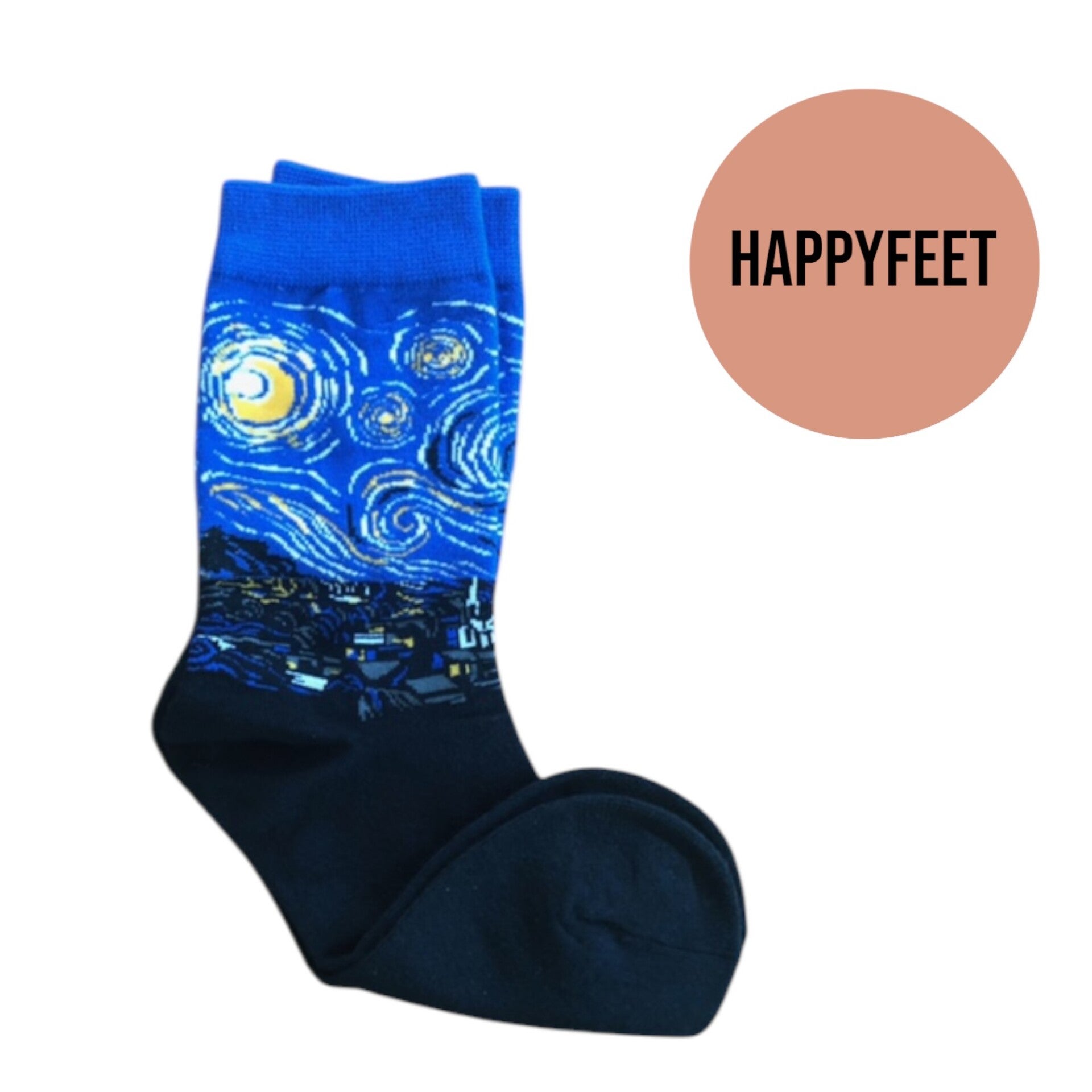 Drop det kedelige og gør plads til farver, sjove mønstre og små kunstværker på dine fødder. Happy Feet er one size strømper med festlige designs inspireret af mennesker, dyr og kreativ galskab.