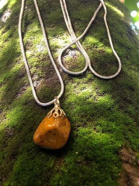 Brun agat sten i sølvbelagt kæde