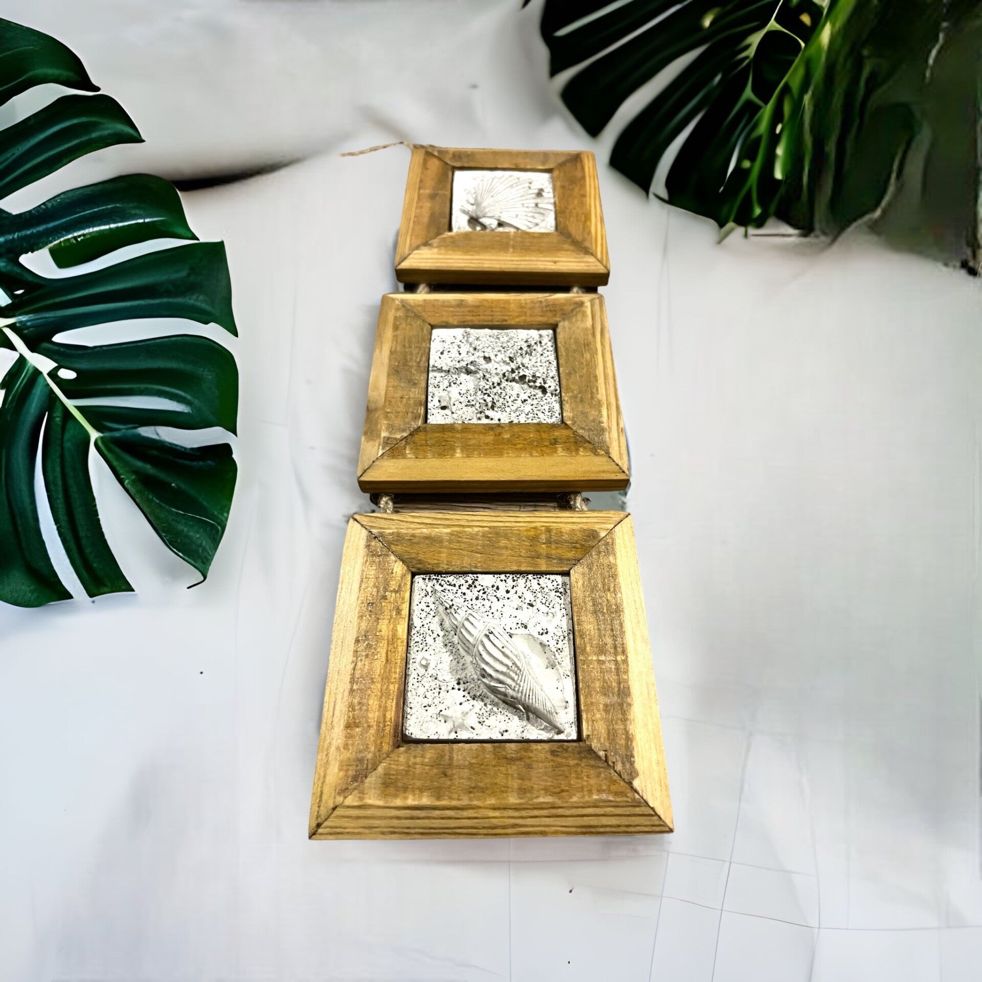 Træophæng til badeværelset eller sommerhuset med motiv af forskellige muslinger.