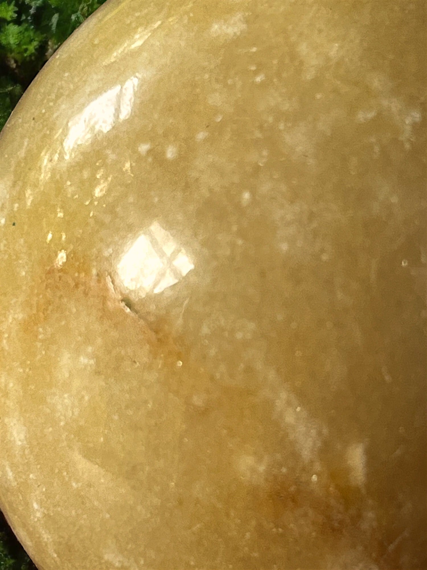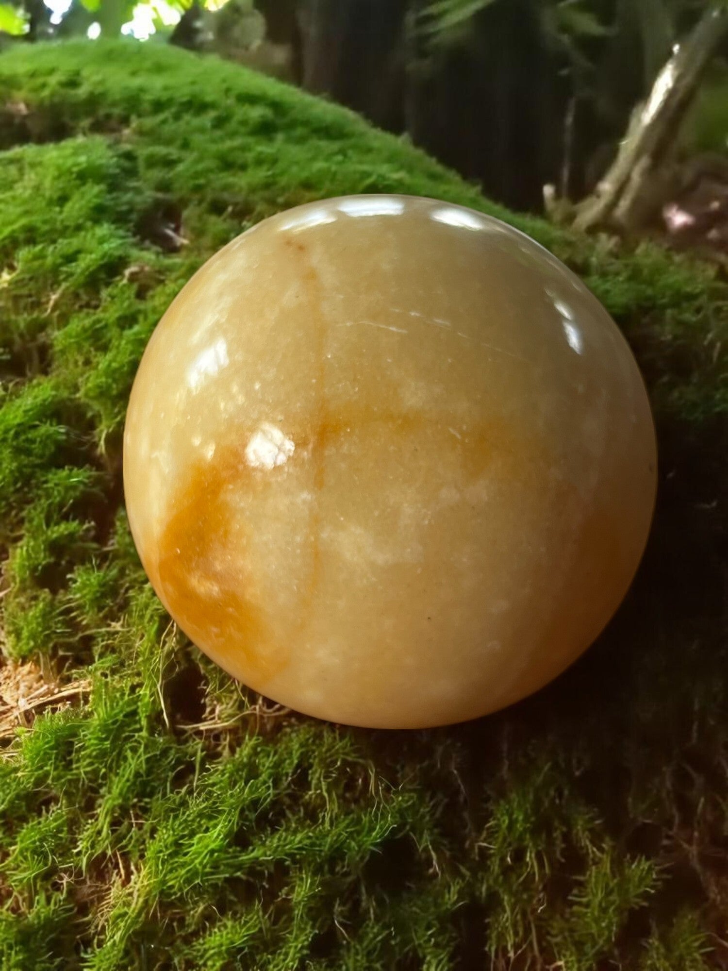 Gul agat stens kugle - den er flad i bunden så den kan stå uden at trille.
