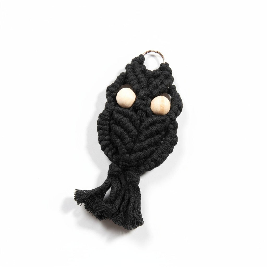 Størrelse: 19 x 8 cmMateriale: Metal, træ, macramé garnFarve: Sort