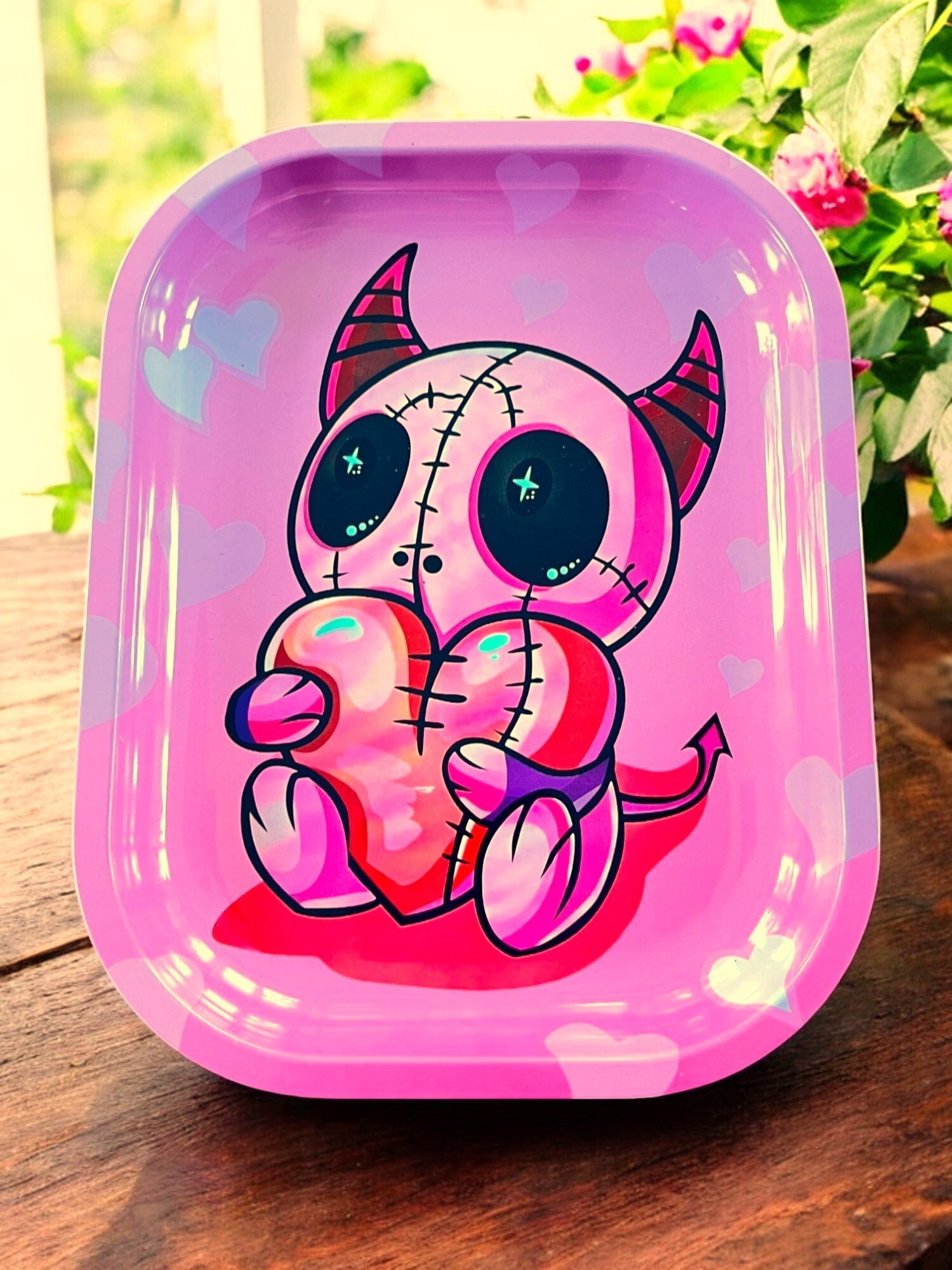 Print i pink med lille djævel med hjerte.