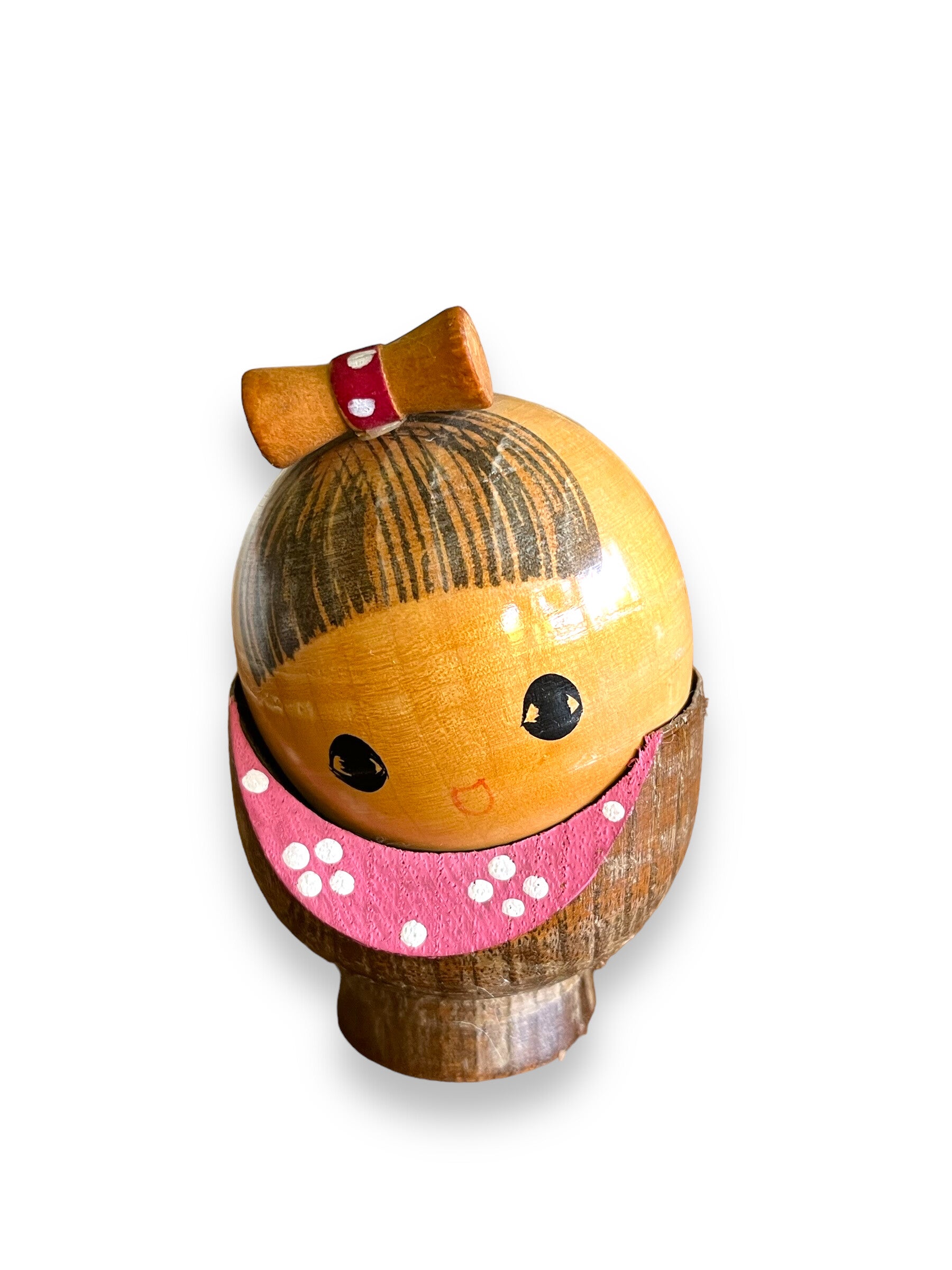 Sød lille pige med hoved på skrå og sløjfe i håret.Hun er lavet af den prisvindende kunstner Kouhou