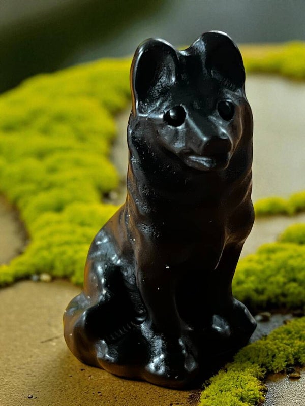 Lille ulv skåret i obsidian, hvilket er et naturligt vulkansk glas.