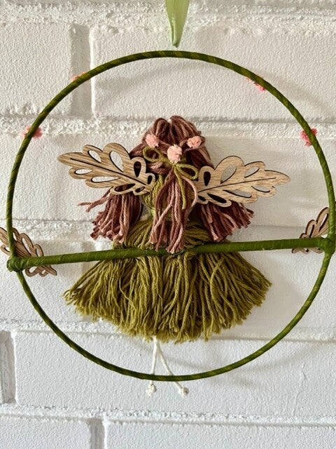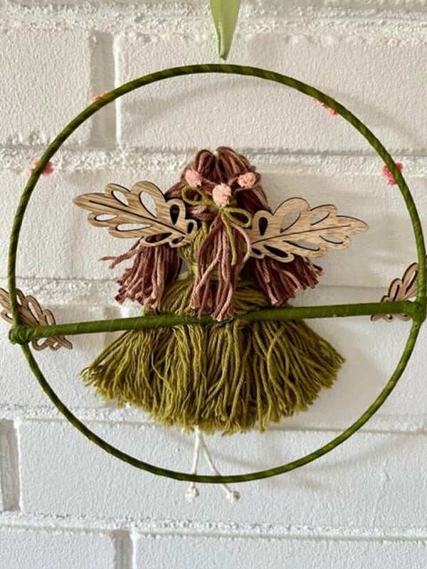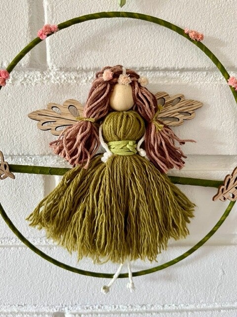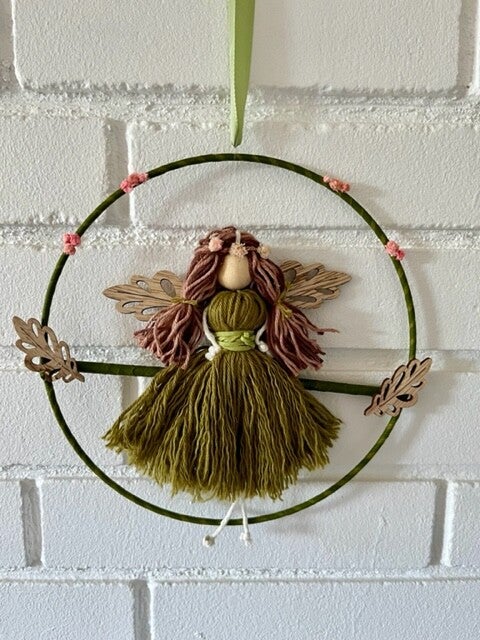 Skovens engel pige med grøn kjole siddende i ring med blomster