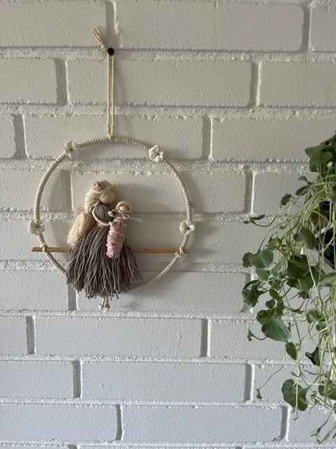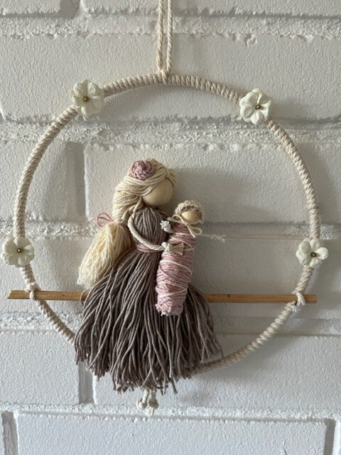 Mor og baby siddende i ring med blomster. Den perfekte gave til den nye mor.