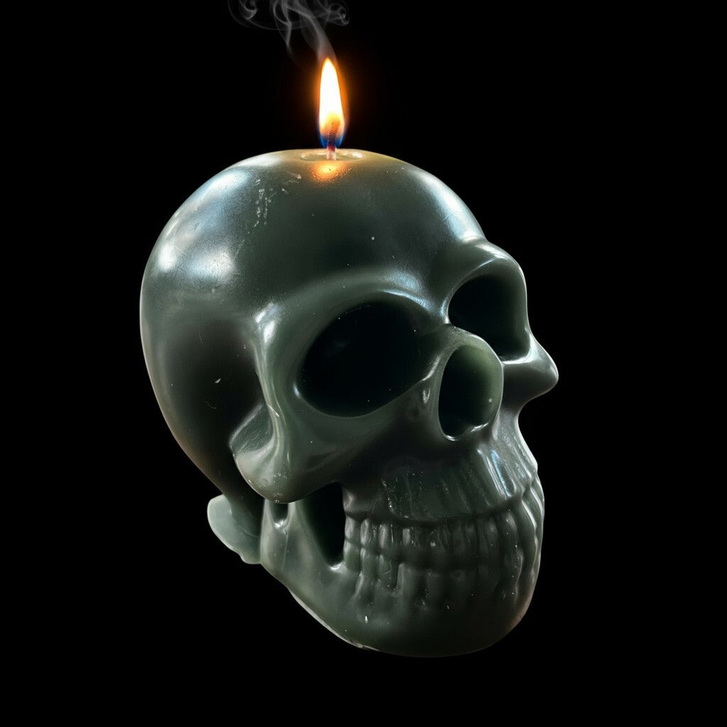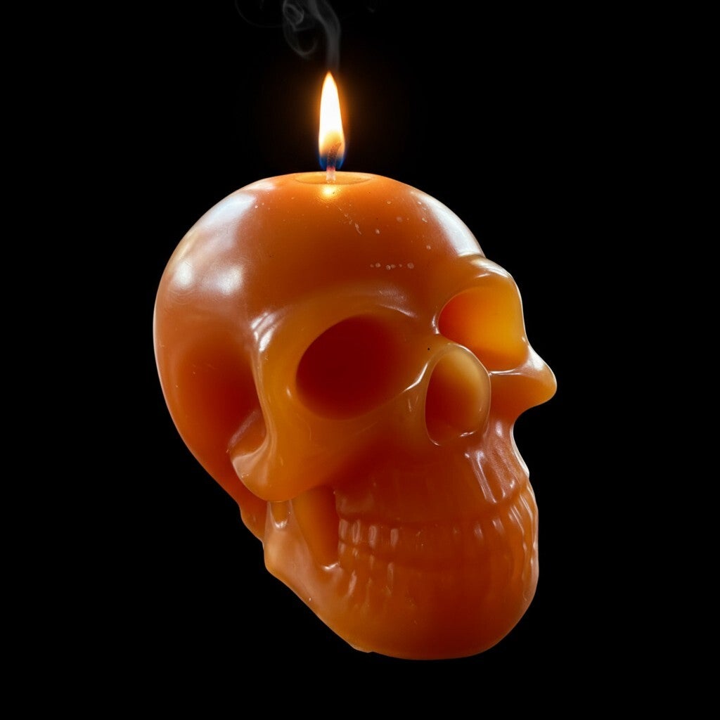 Flotte store gennemfarvede stearinlys som kranie