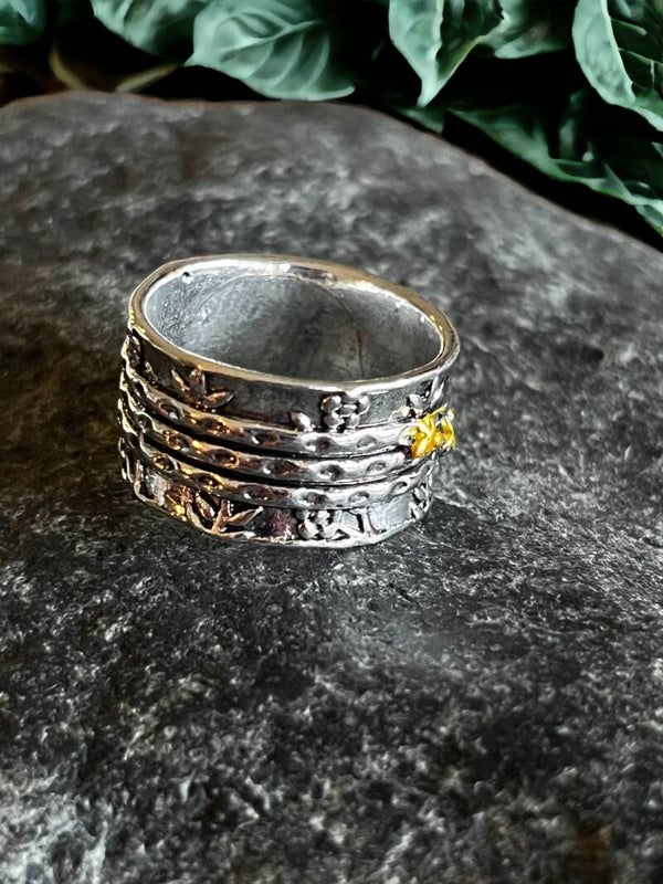 Flot rustik ring med motiv af små blomster og bier.