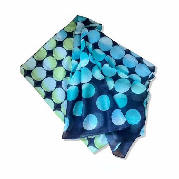 Her får du et let og levende tørklæde i blød, vævet polyester med et smukt, farverigt print. De runde nuancer i blå og grøn giver et friskt spil, der løfter både hverdagslook og mere elegante outfits. Stoffet falder luftigt og behageligt, og farverne holder sig klare, så det bliver en favorit sæson efter sæson. Et enkelt accessorie med masser af personlighed og et strejf af moderne grafisk stil.