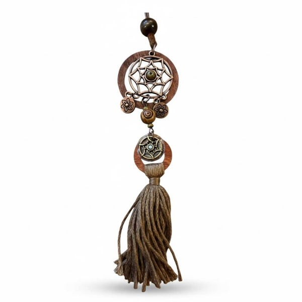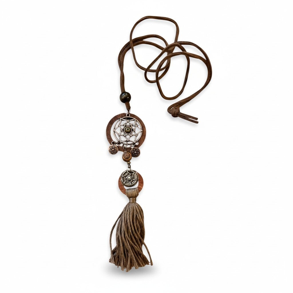 Æstetisk flot halskæde i brun med drømmefanger og kvast.