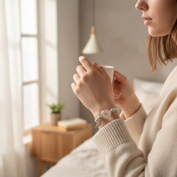 rmbånd med resinkugle hvor der er et mælkebøttefrø